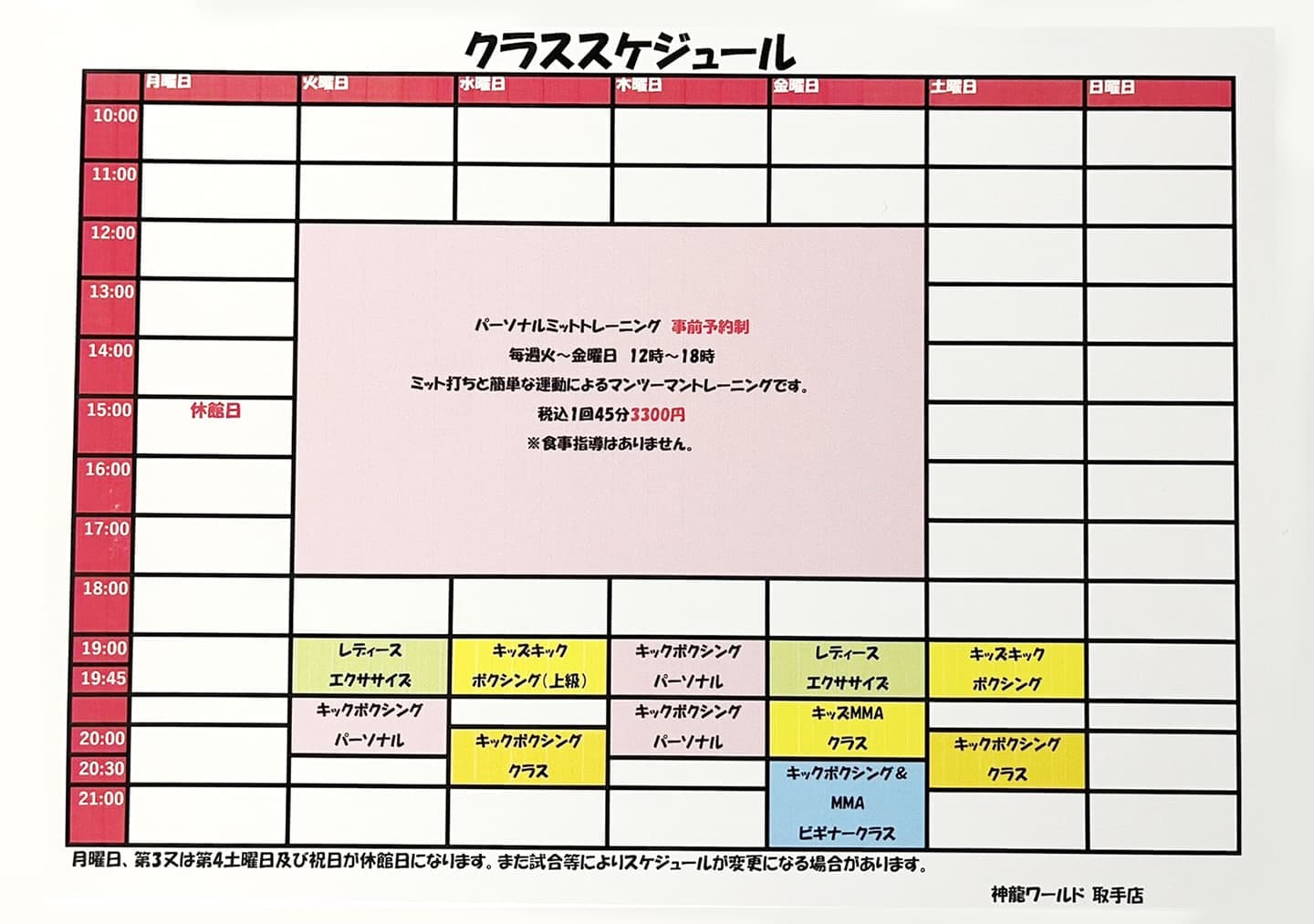 | 備考 | 見学、体験入門随時受付中! |